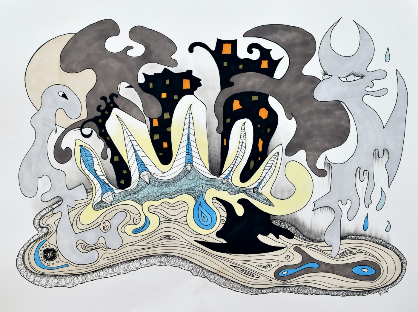 But luckily the deadline got extended to tuesday and I had to work around the problem and choose a different path. I handed in two oil monotypes and two illustrations. Here above you can see my illustration “Crystalline”.