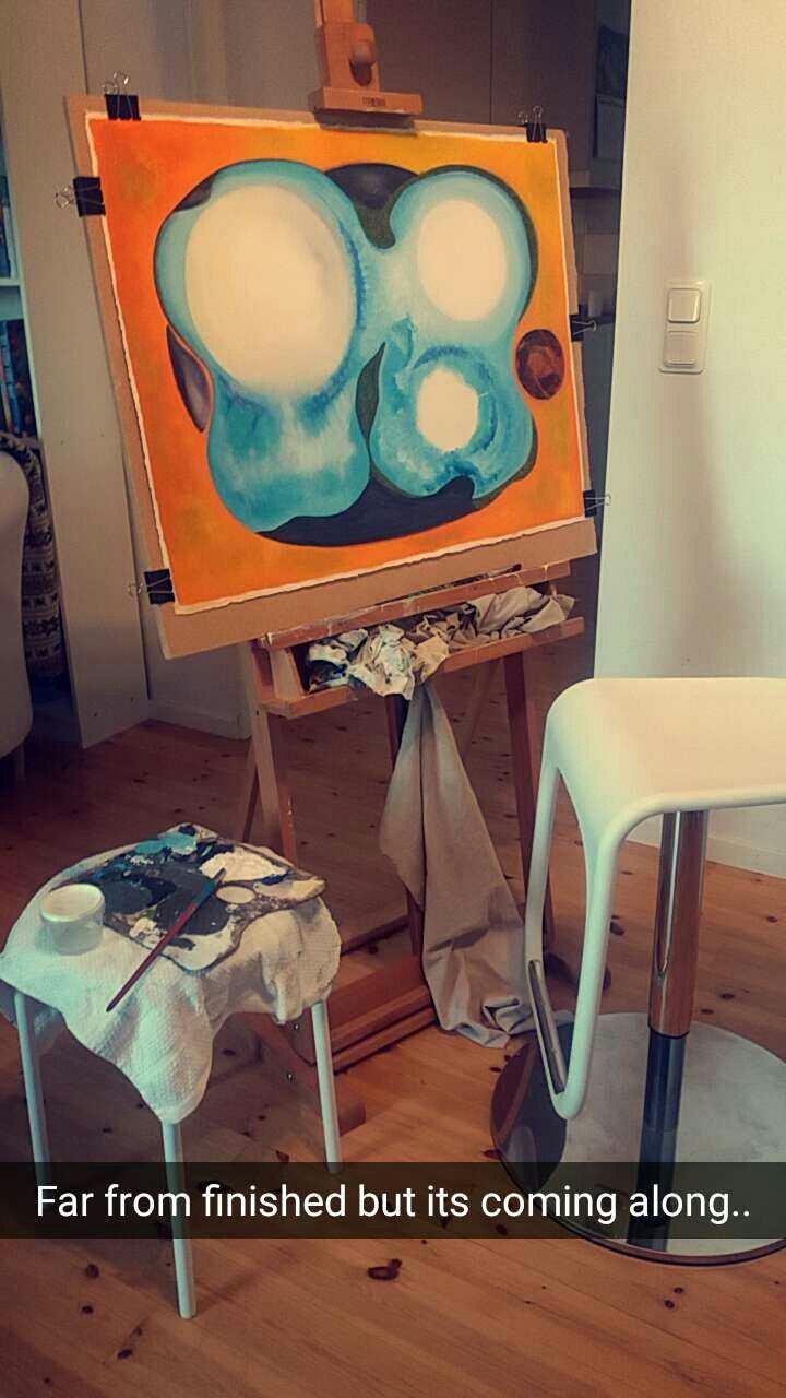 I started painting with oilcolors again. It feels really great. Lately I’ve mostly been focused on my Illustrations. But there is a certain feel to oilcolors. The fact that you are standing by an easel sharpens you up a bit. And I love the new arches oil colour papers I bought in the Us. There is a special finish to the surface thats very different. It’s a satin finish that reminds me of sand.