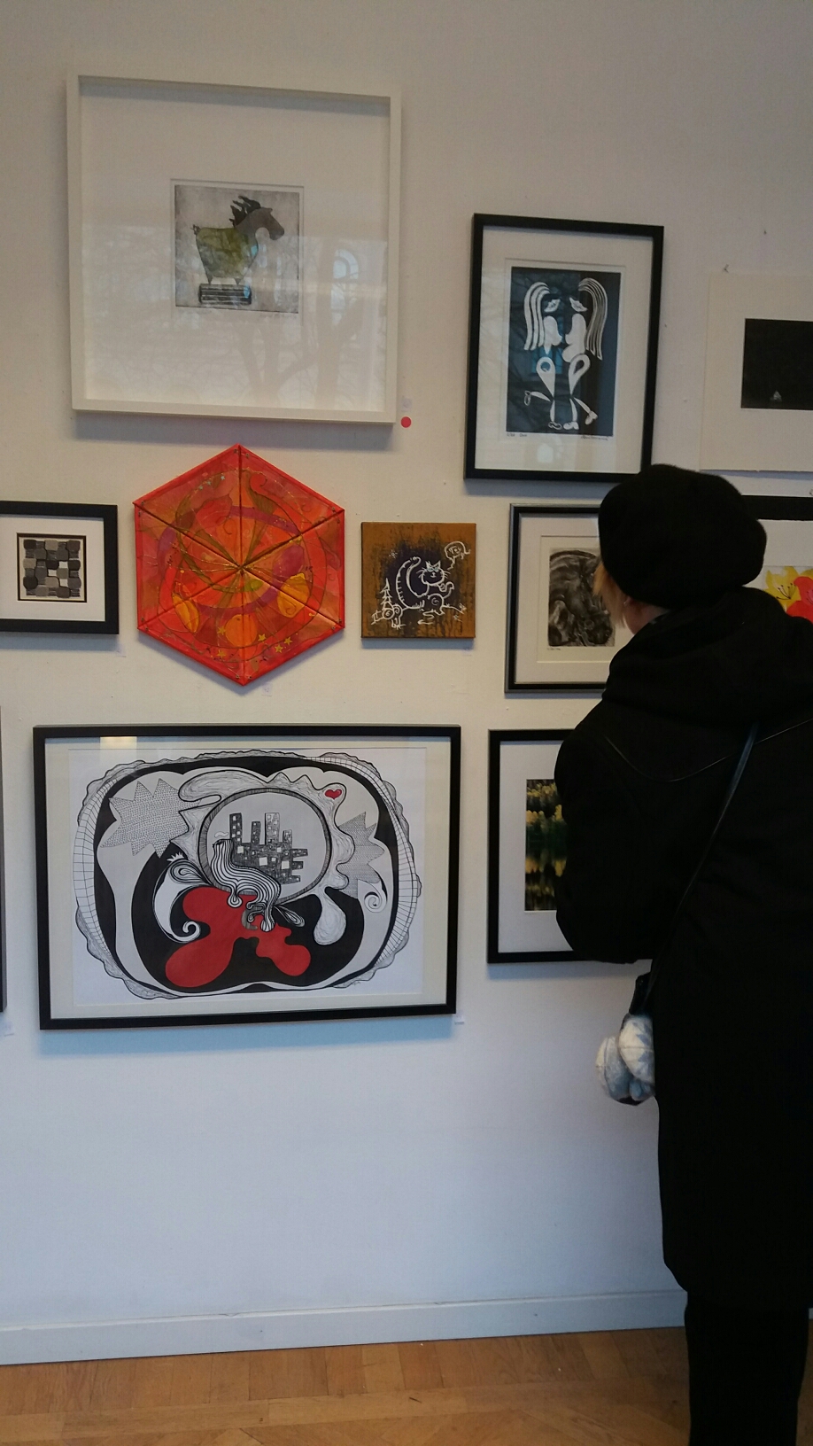 My painting is the red and black at the bottom. I saw several great pieces at the exhibition that I liked, both in Printmaking techniques and also some abstract paintings.